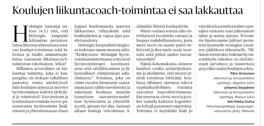 Veli-Pekka Dufvan mielipidekirjoitus HS 8.3.2026đź’™