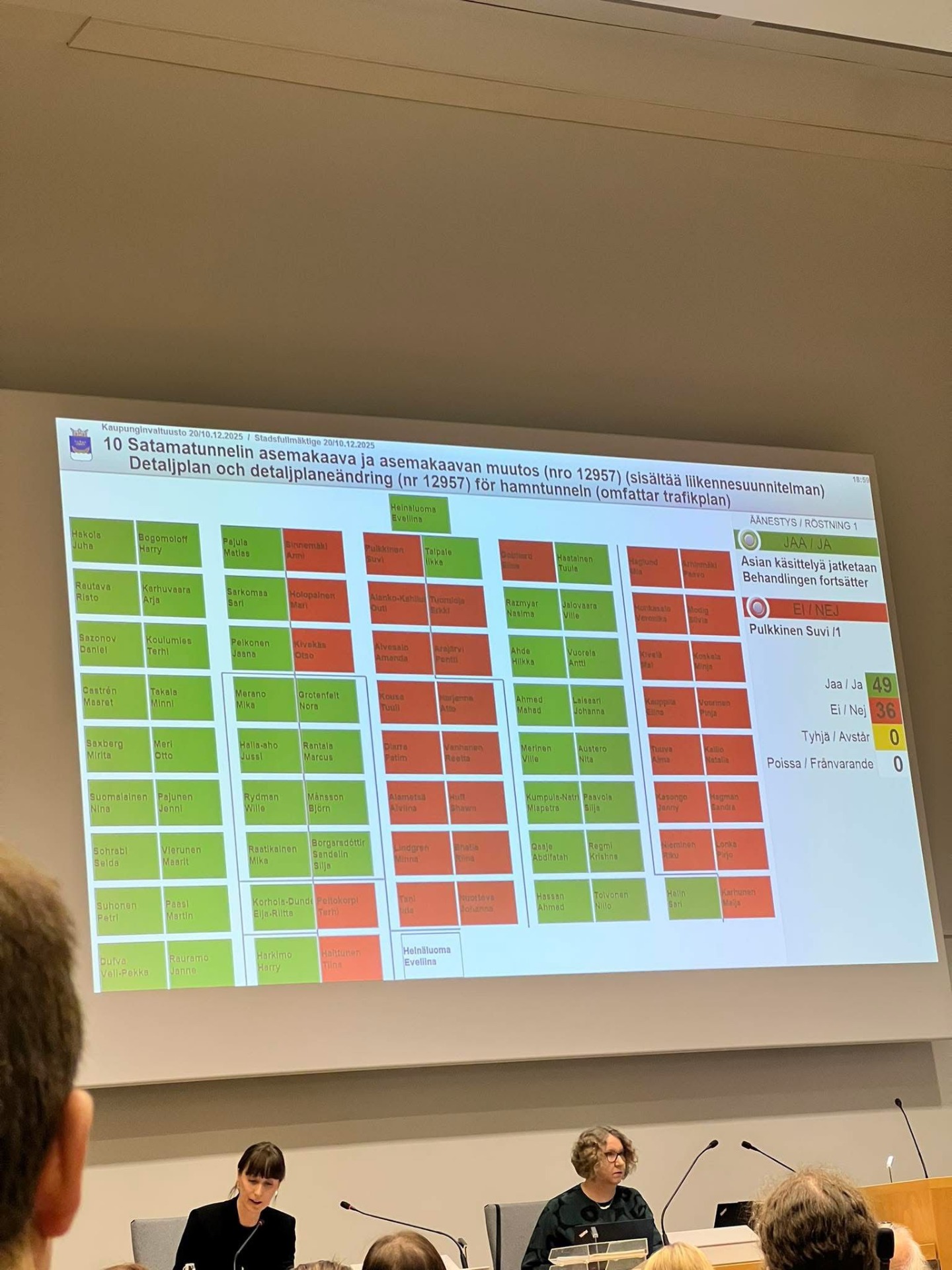 Jätkäsaaren satama tunneli läpi äänin 49-36 Kaupunginvaltuuston kokouksessa 10.12.25 💙